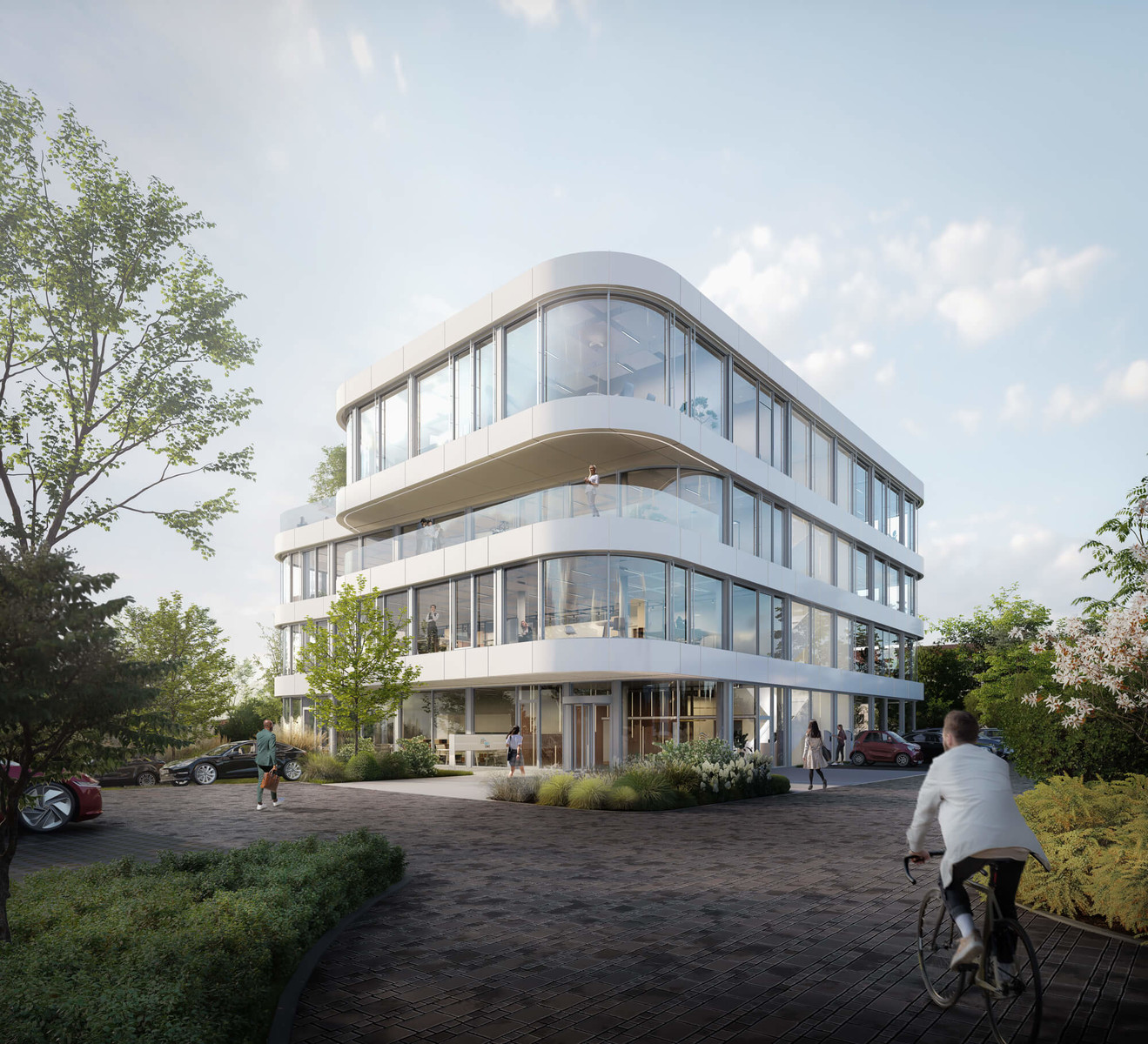 - Von außen fällt das Bürogebäude durch seine offene, lichtdurchflutete Glasfassade und Design sofort ins Auge.