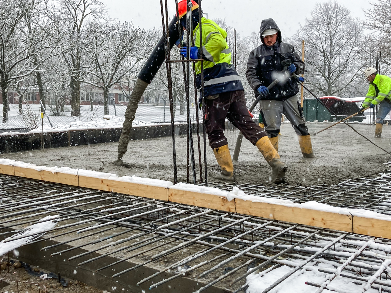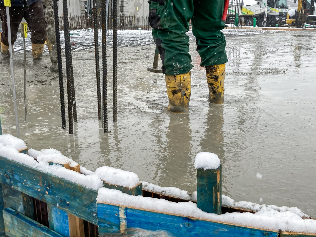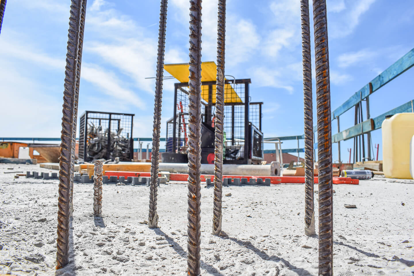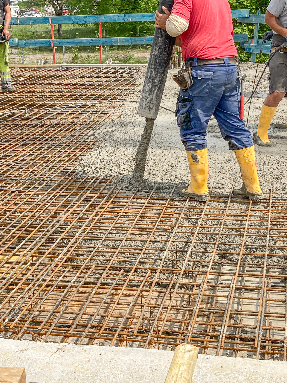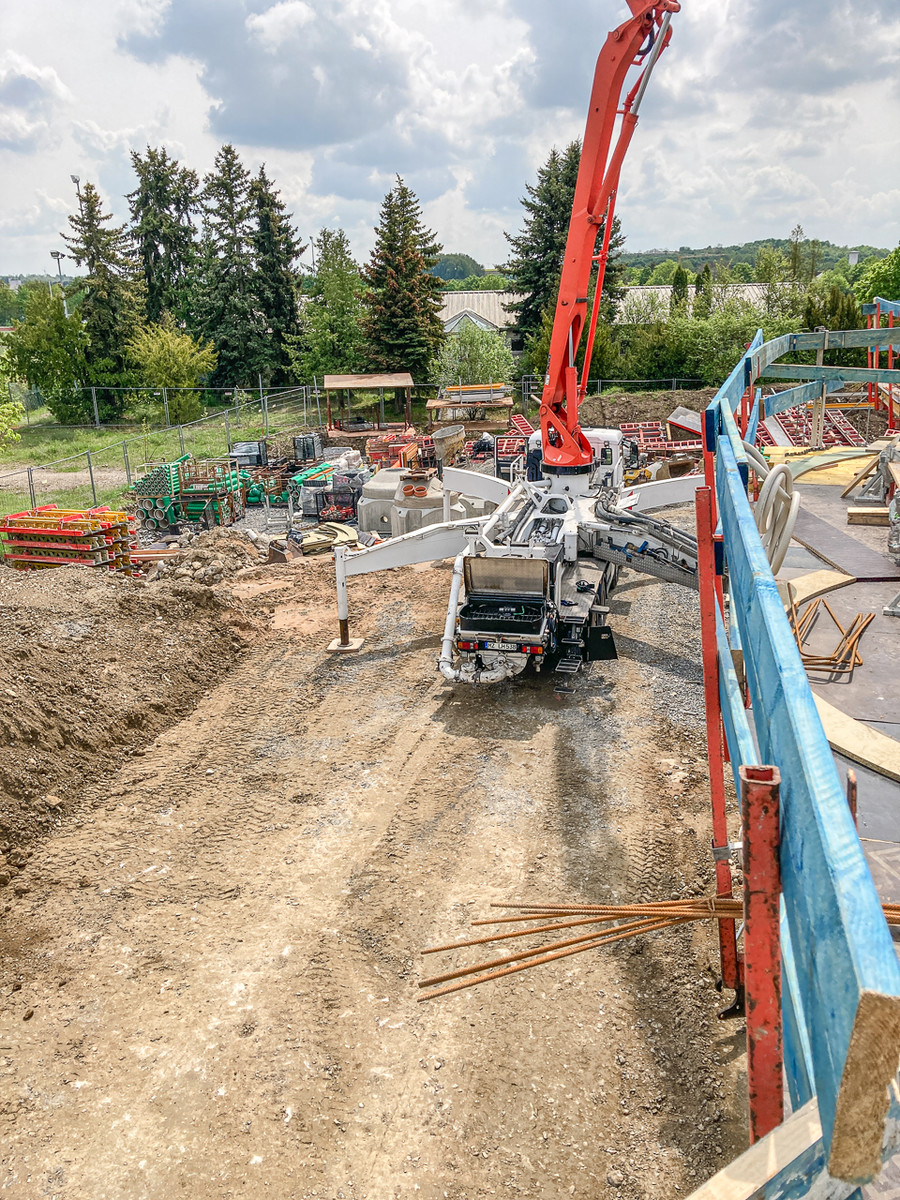 Die letzten Bereiche der Bodenplatte werden für die Betonage vorbereitet. Nach Fertigstellung der Bodenplatte ist erstmalig der gesamte "Footprint" vor Ort zu sehen.