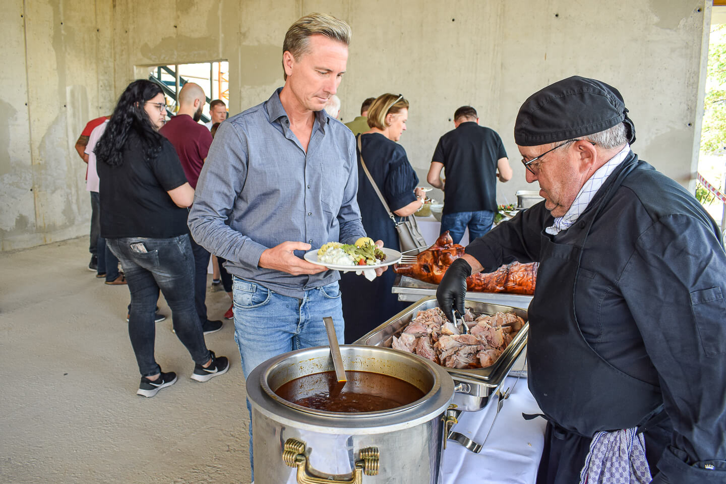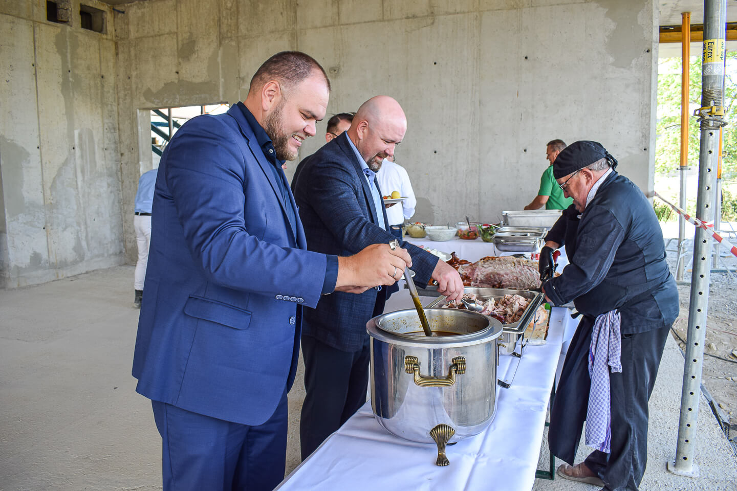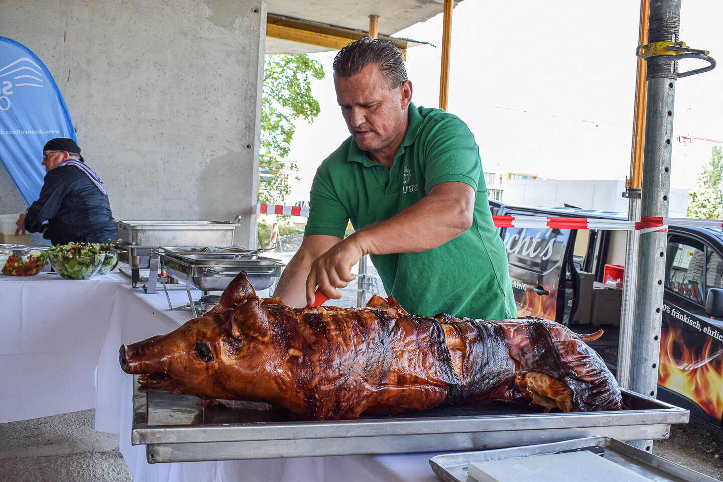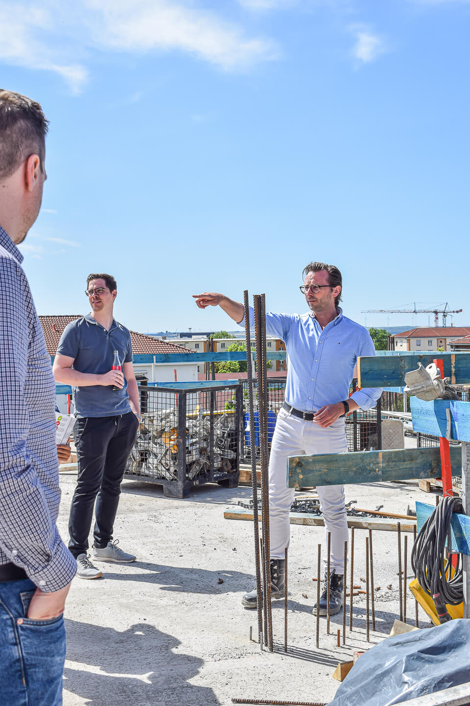 Das Wetter war traumhaft und so konnte das langersehnte Baustellenfest in perfekter Athmosphäre gefeiert werden - mit einem leckeren fränkischen Buffett von Albrechts Catering, Getränken und Aperitiven vom Esswerk. Die Gäste machten sich einen persönlichen Eindruck bei Führungen mit Architekturbüro Schmelze & Partner und schwärmten von dem traumhaften Ausblick ins Grüne der obersten Etage.
