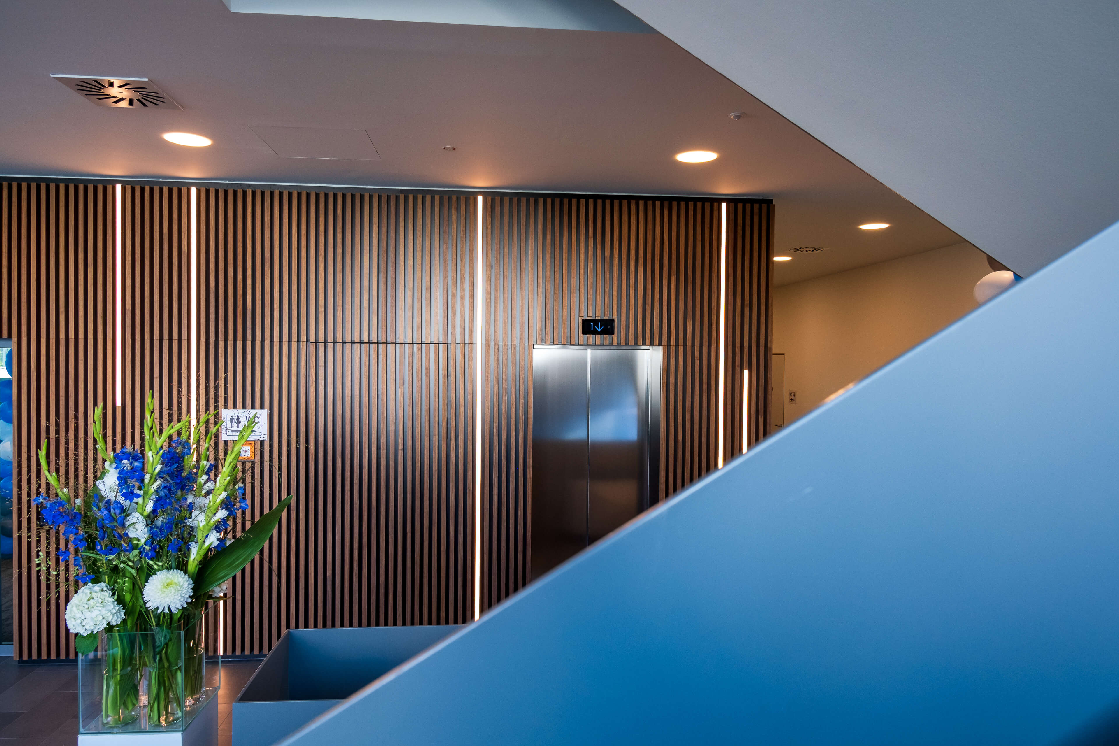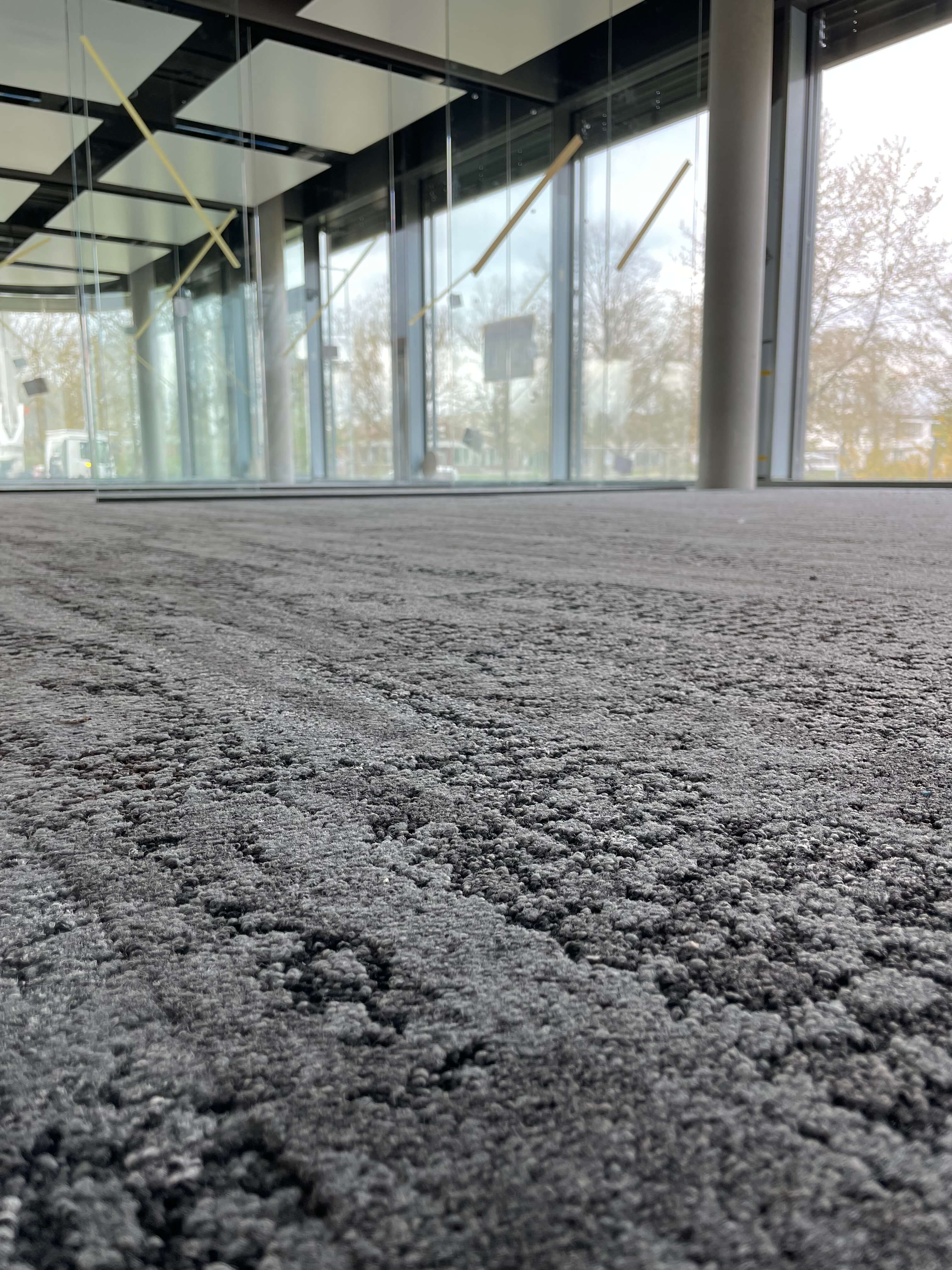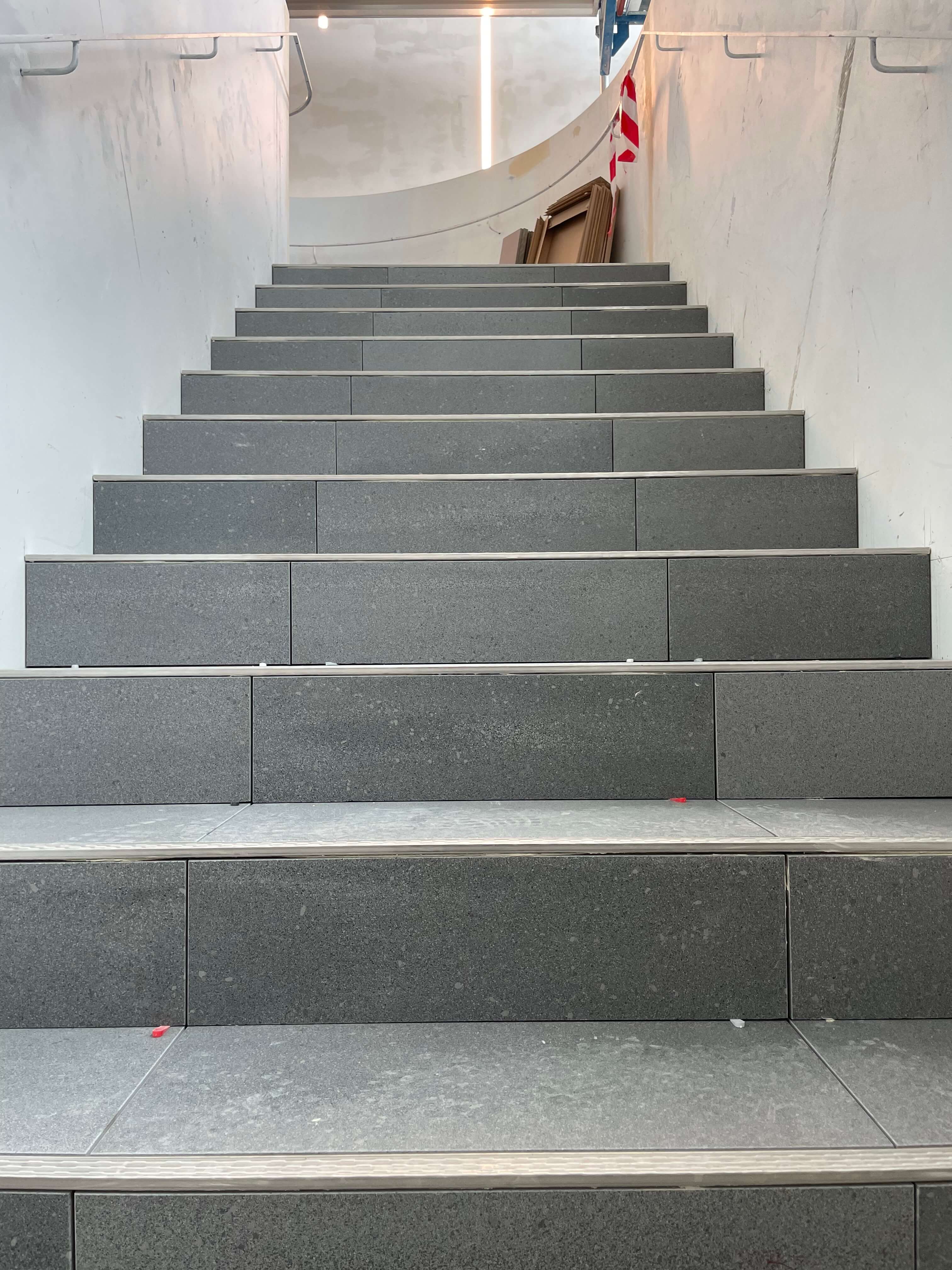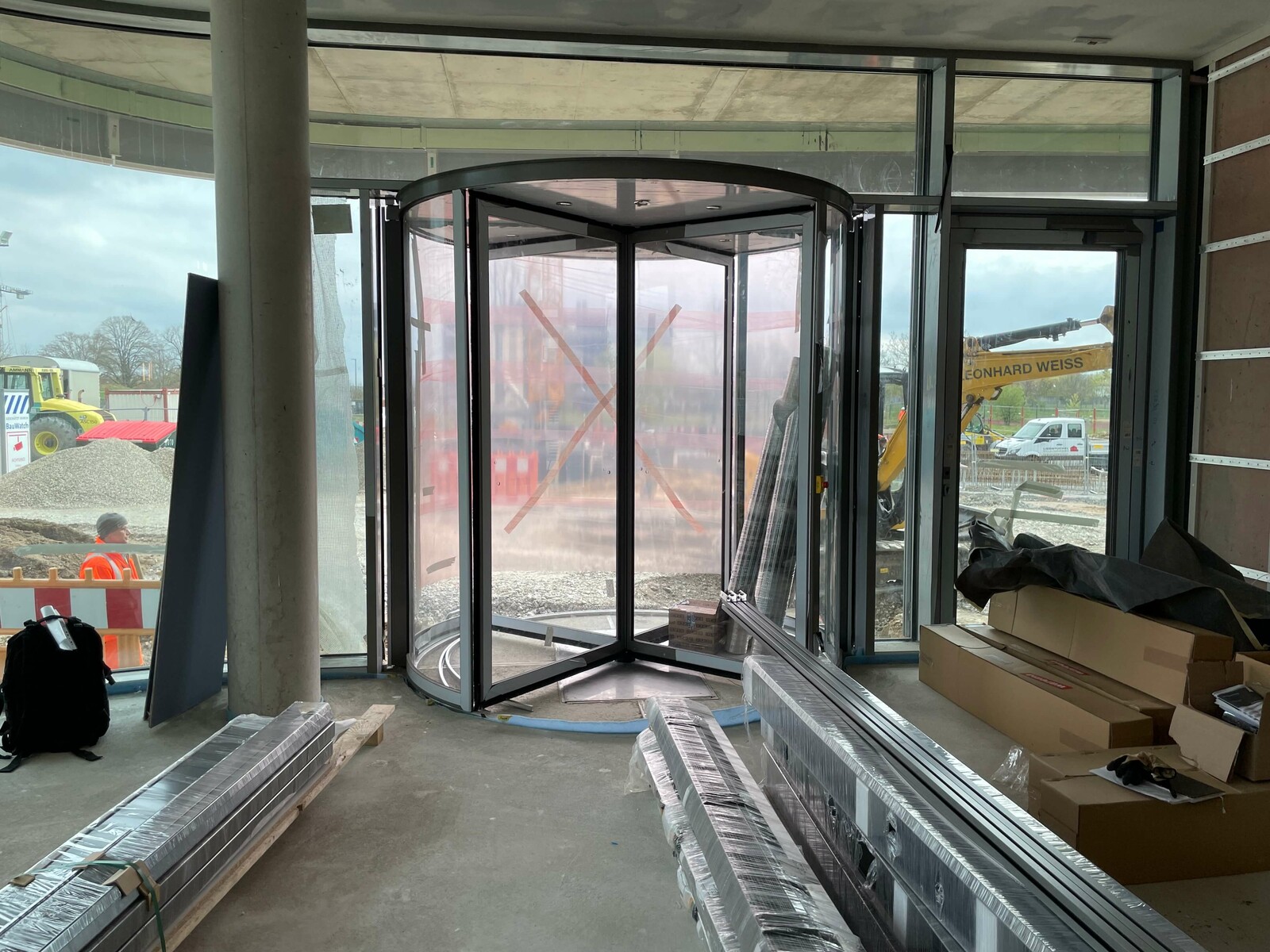 Die neue Karusselltür im Eingangsbereich begrüßt bald unsere Kunden und symbolisiert den Beginn einer neuen Ära. Die ersten Teppichbereiche sind verlegt und geben den Räumen ein neues Aussehen und eine angenehme Atmosphäre. Auch im Treppenbereich geht es voran, Schritt für Schritt werden die Fliesenarbeiten umgesetzt und der Bereich erstrahlt schon bald in neuem Glanz. Ein Blick nach oben zeigt die Installation der Deckensegel in den Büros, welche den Arbeitsplatzkomfort erhöhen. Die Glastrennwände auf den Etagen geben eine klare Trennung zwischen den Bereichen und schaffen gleichzeitig eine offene Atmosphäre.