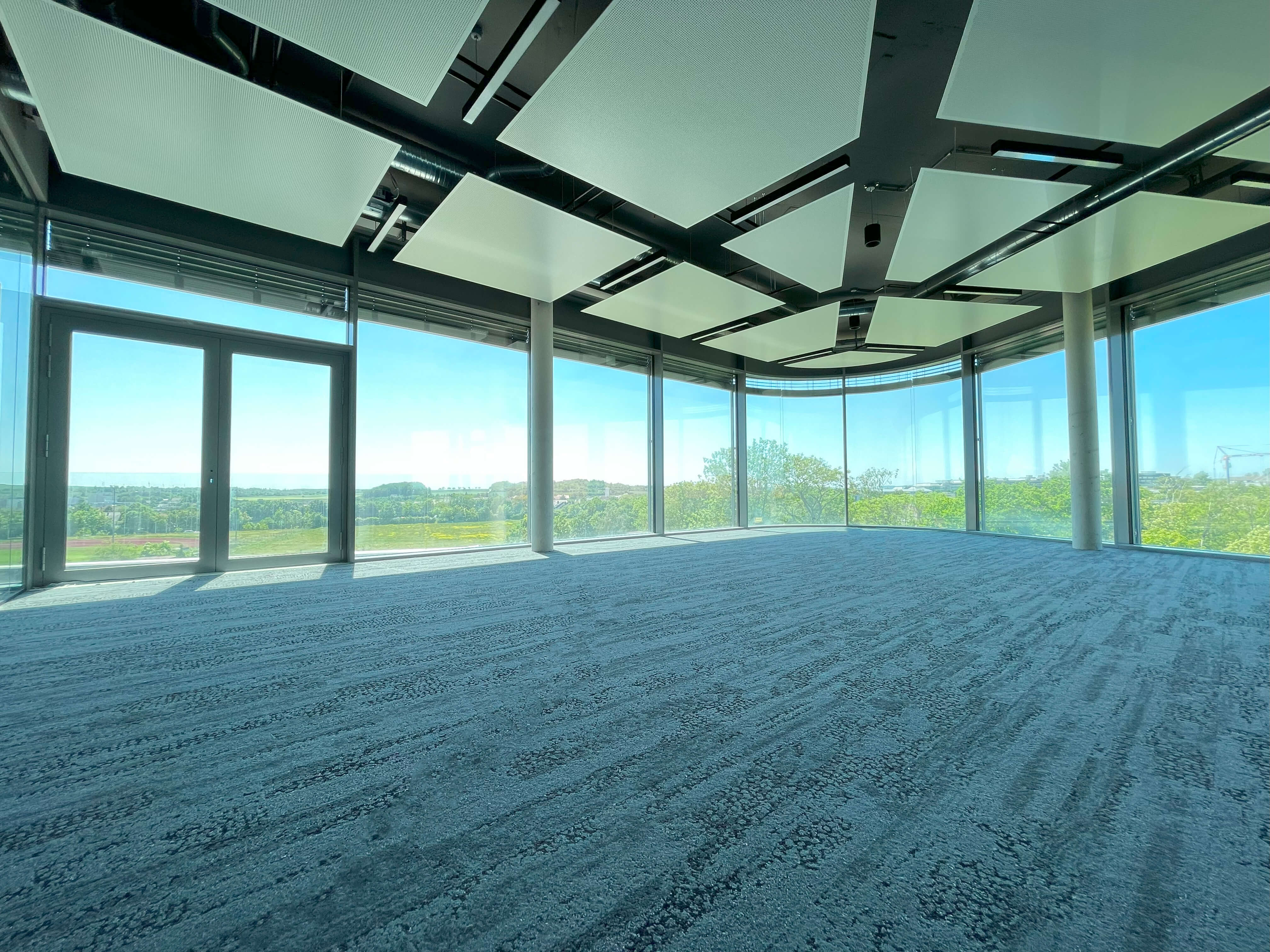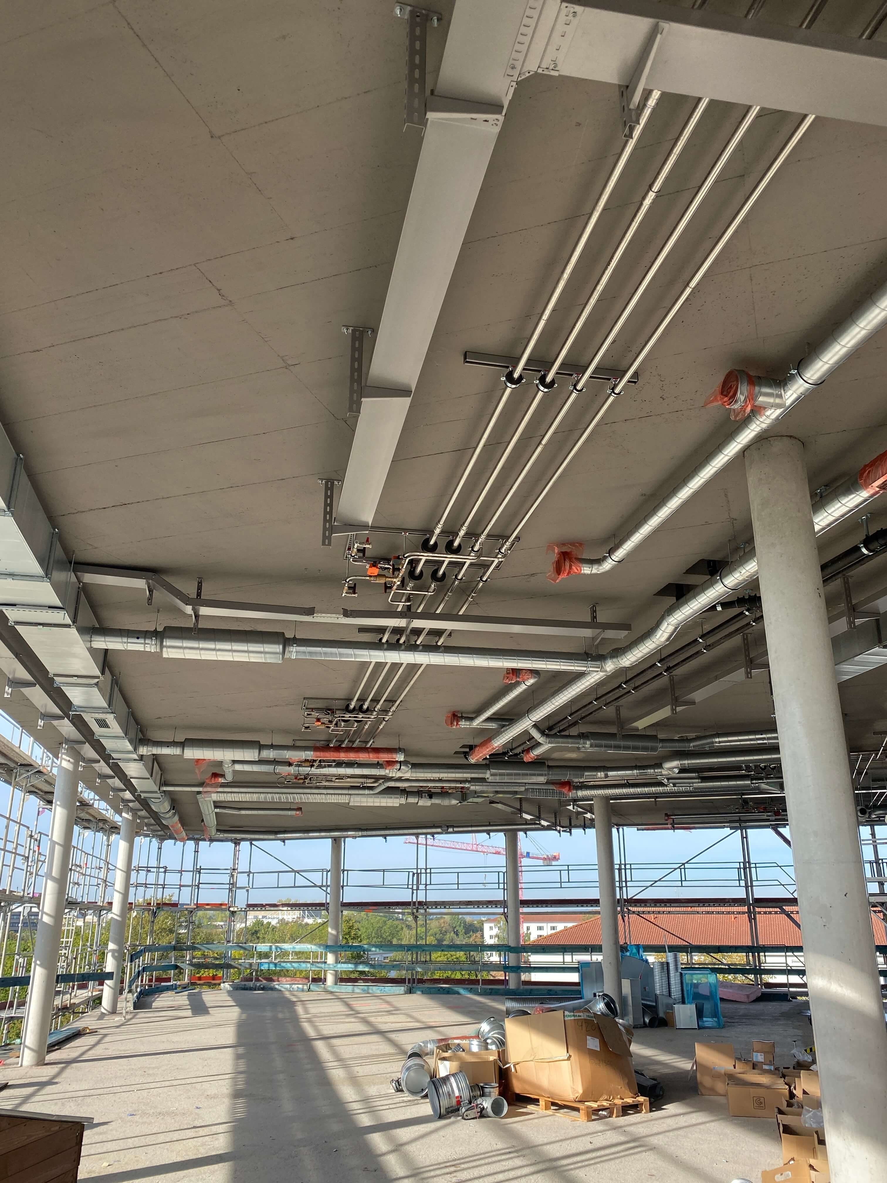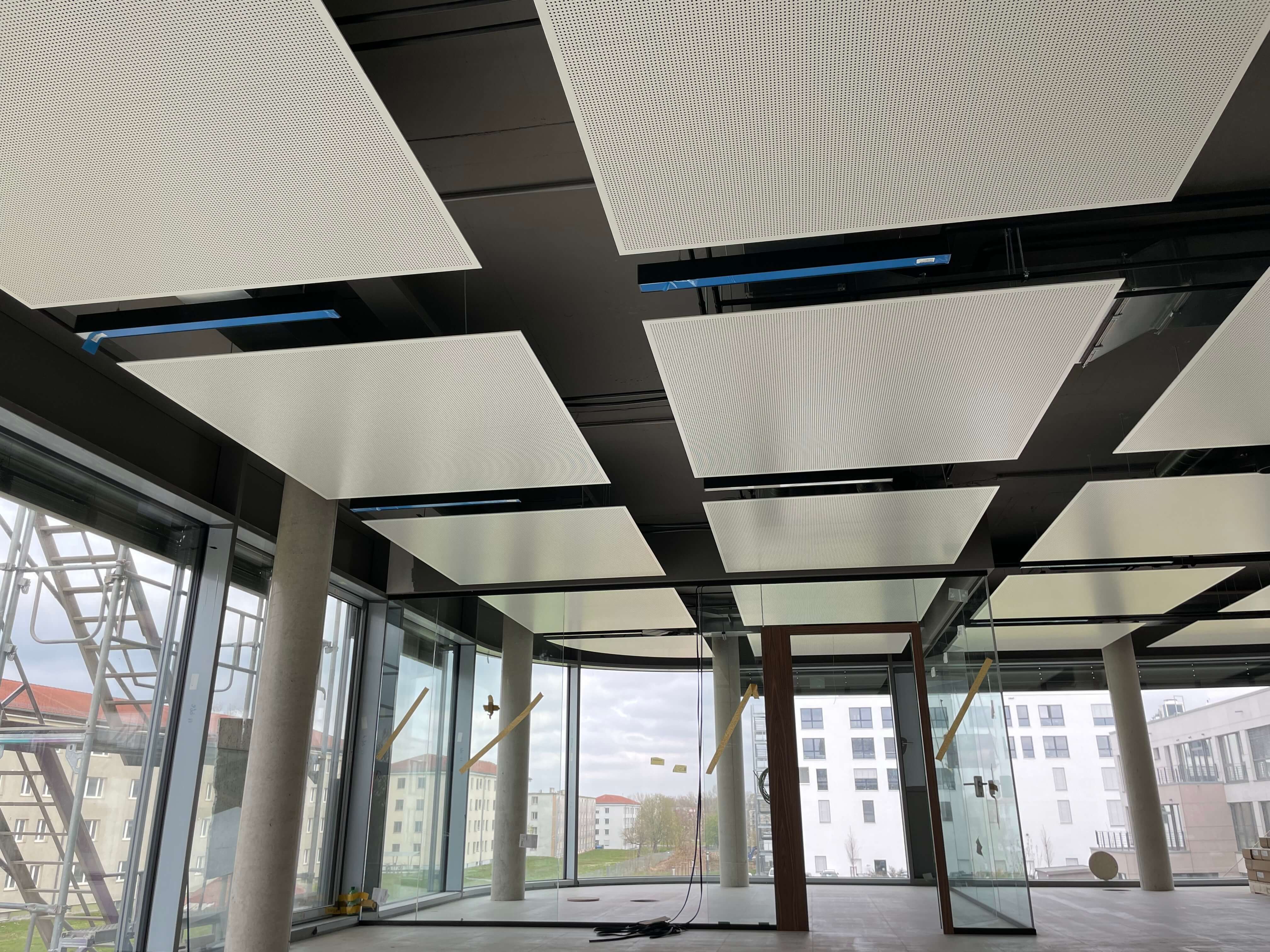 Abgehängte Decken schaffen eine individuelle Atmosphäre und verbessern später die Akustik im Büroalltag. Intelligente Gebäudetechnik sorgt für mehr Effizienz, Komfort und Nachhaltigkeit im modernen Bauen.