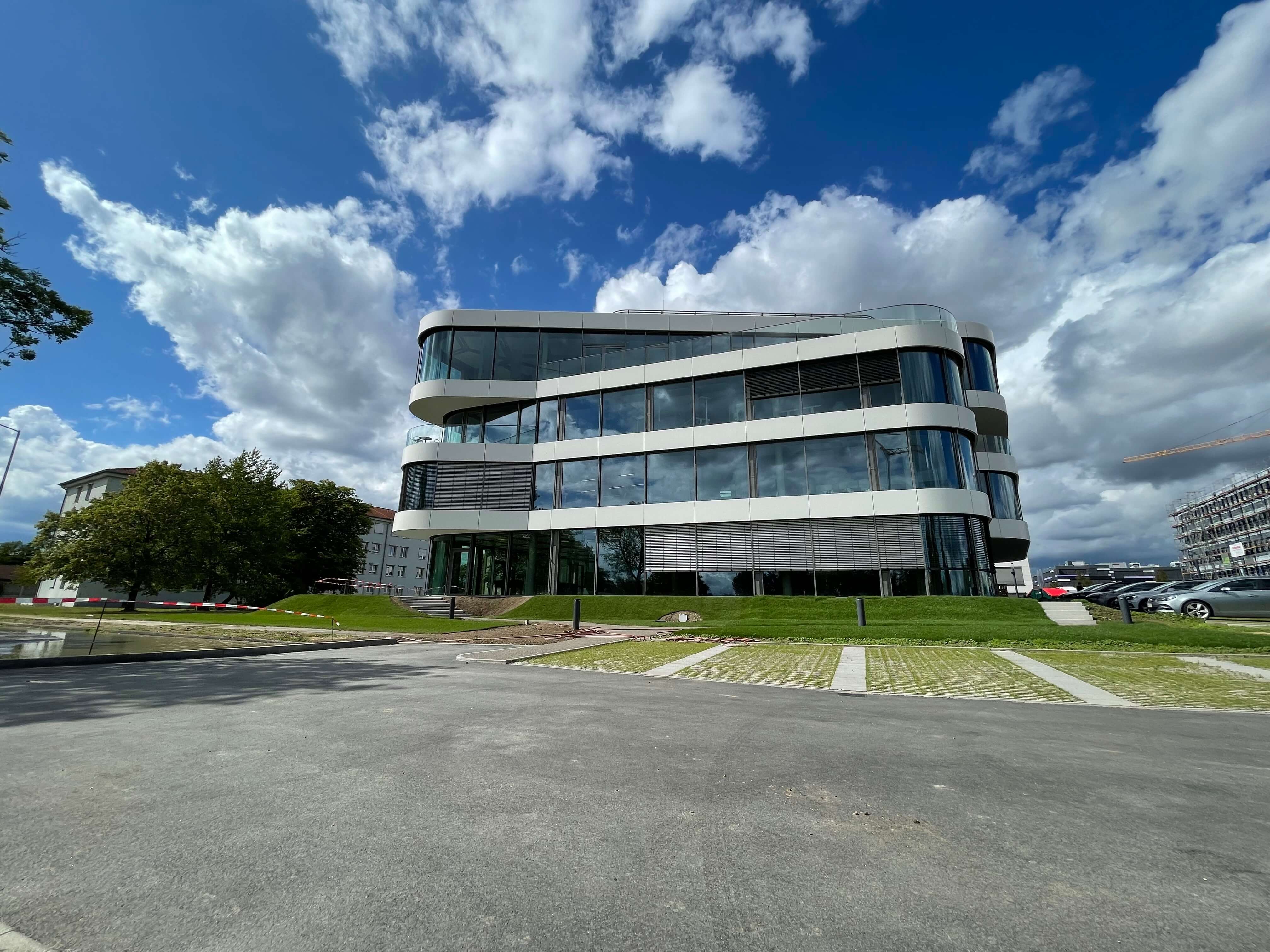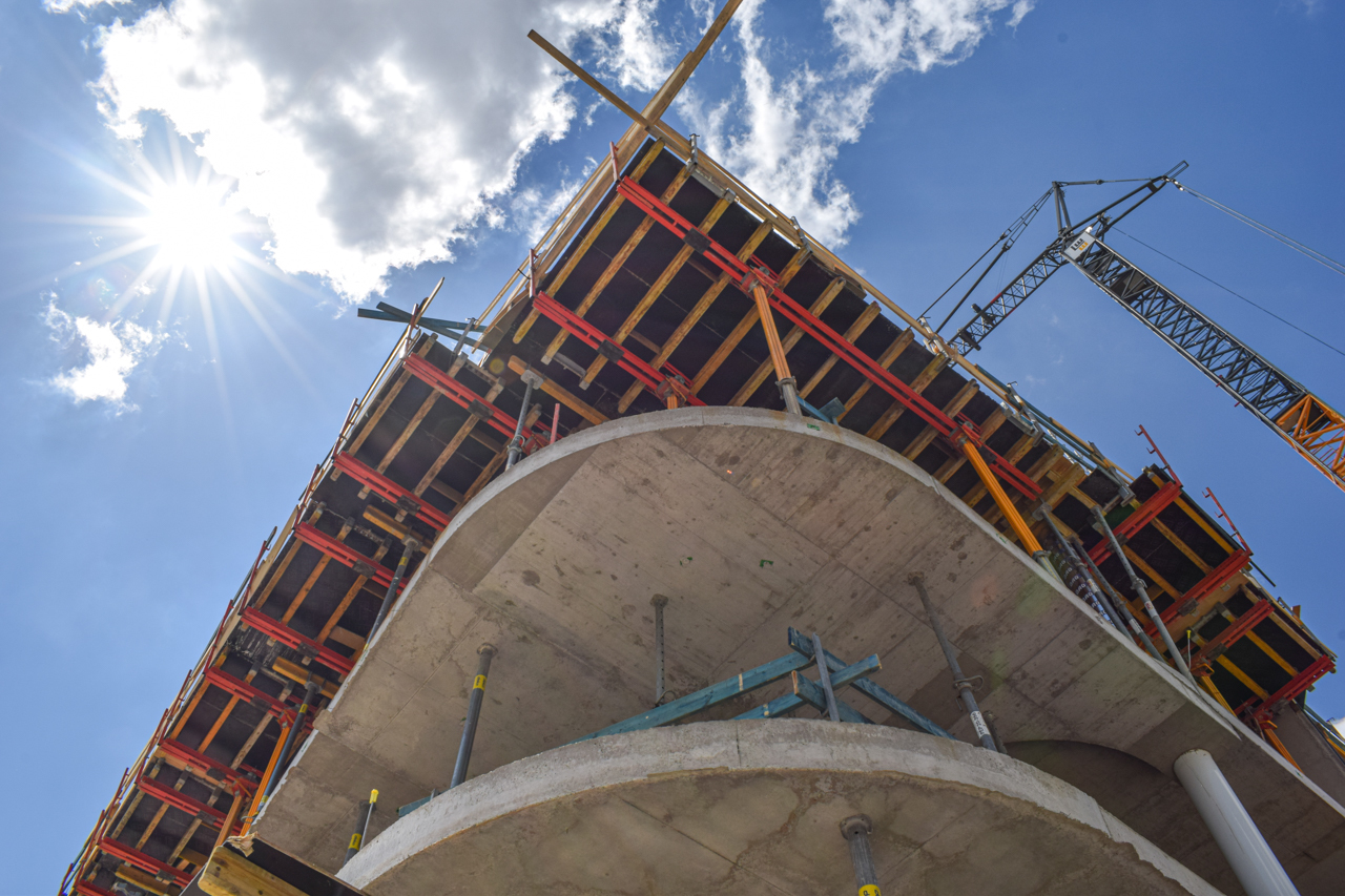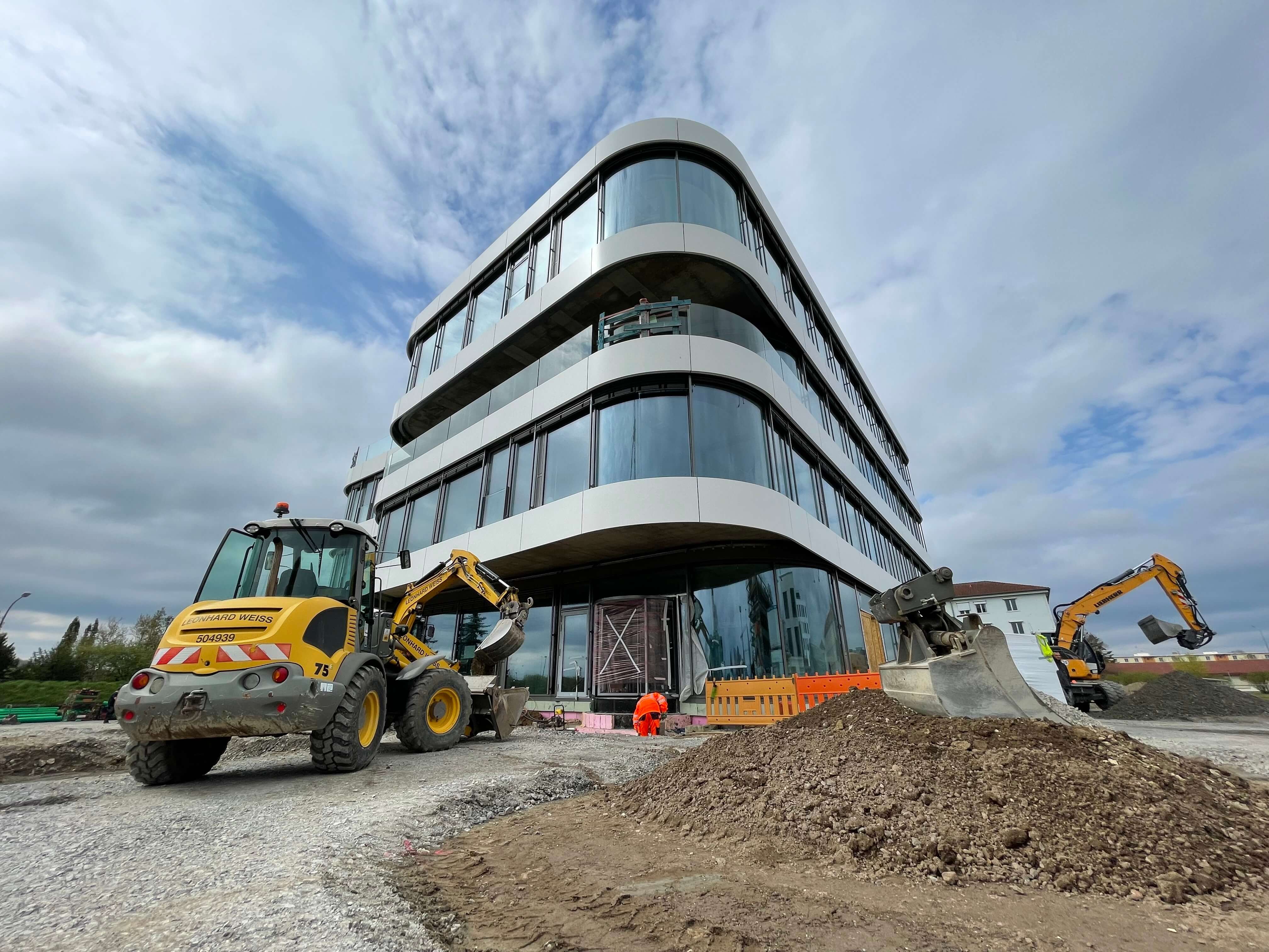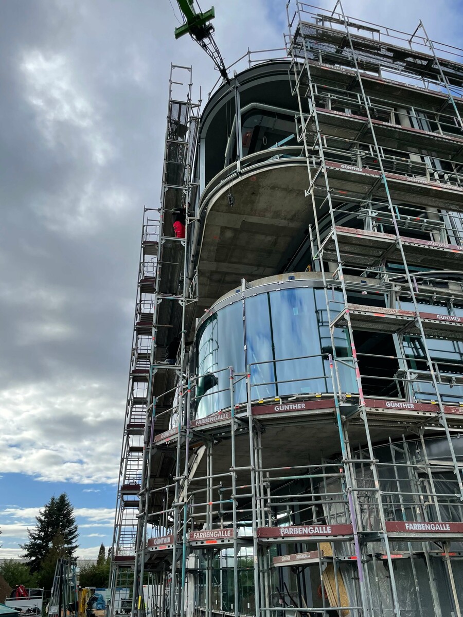 Die gebogenen Gläser verleihen SKYONE.offices die perfekte Form. So behält man auf der Baustelle immer den Durchblick!