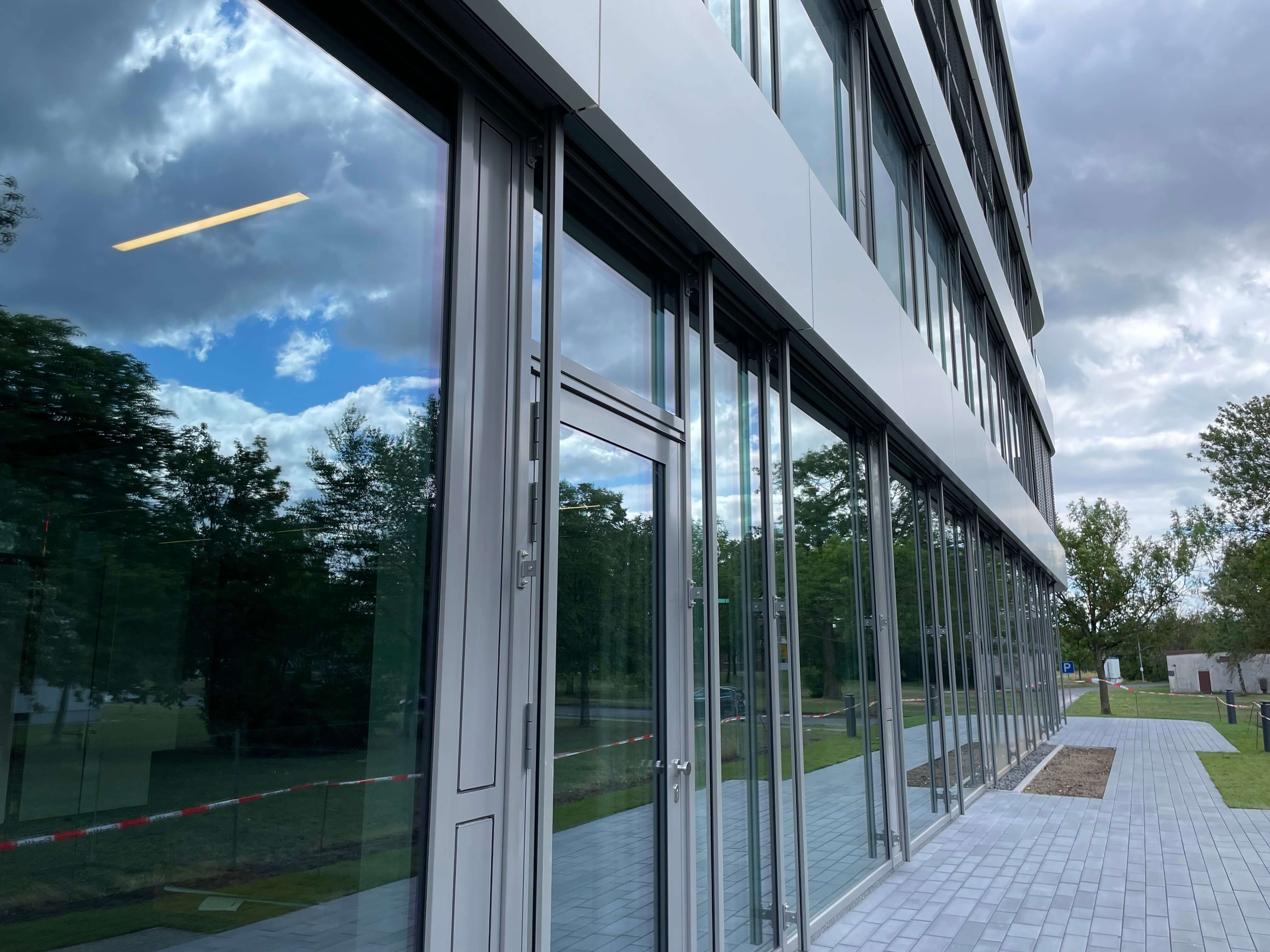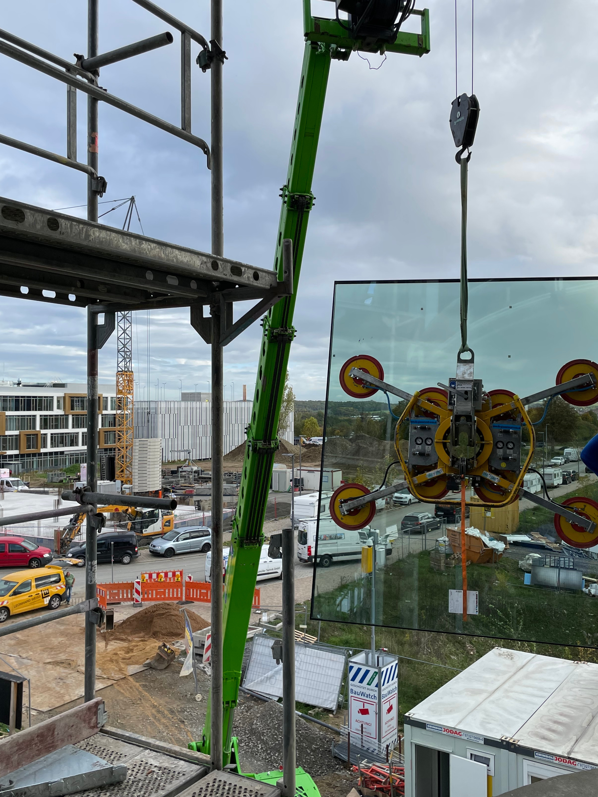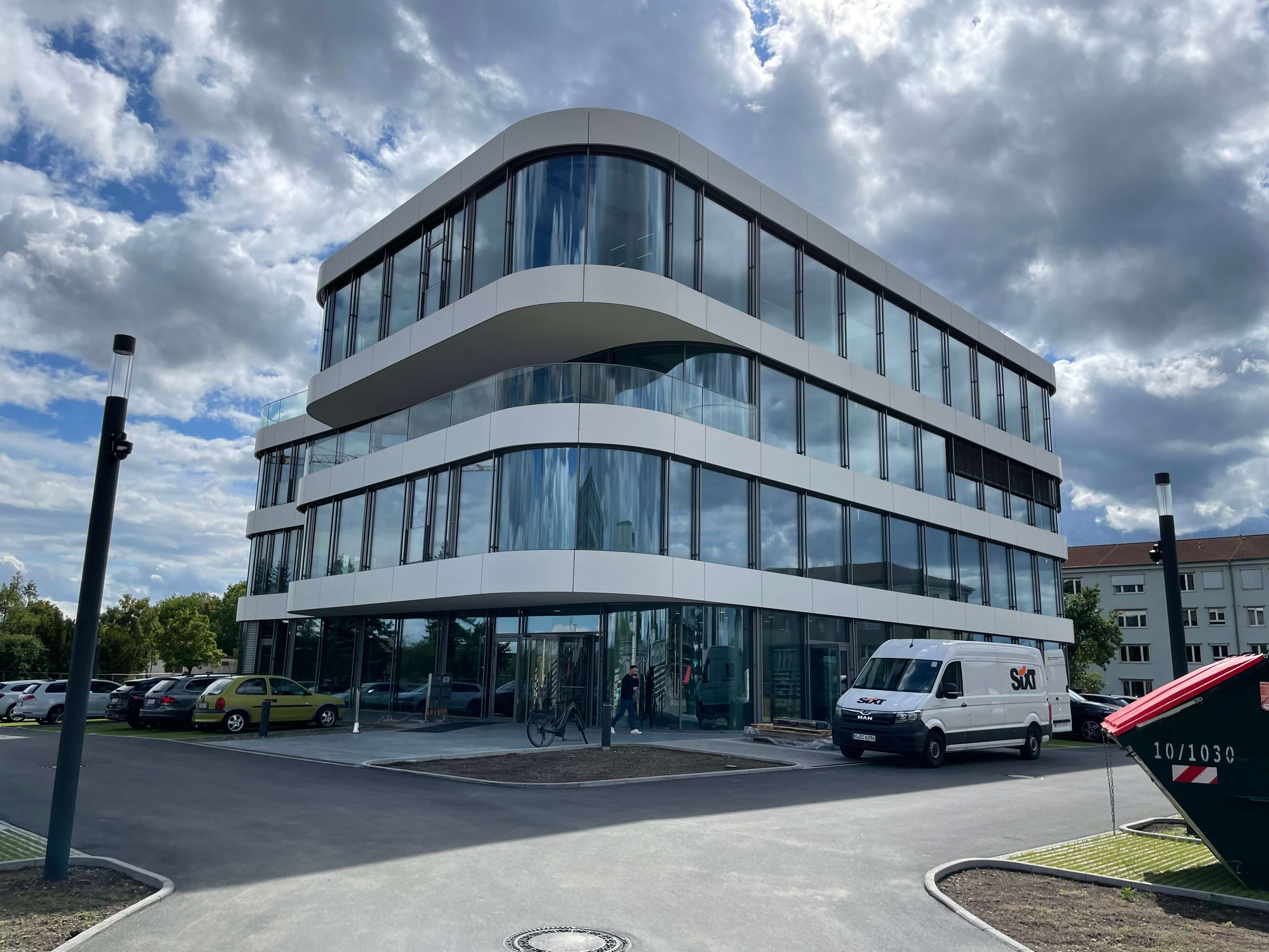 Die gebogenen Gläser verleihen SKYONE.offices die perfekte Form. So behält man auf der Baustelle immer den Durchblick!