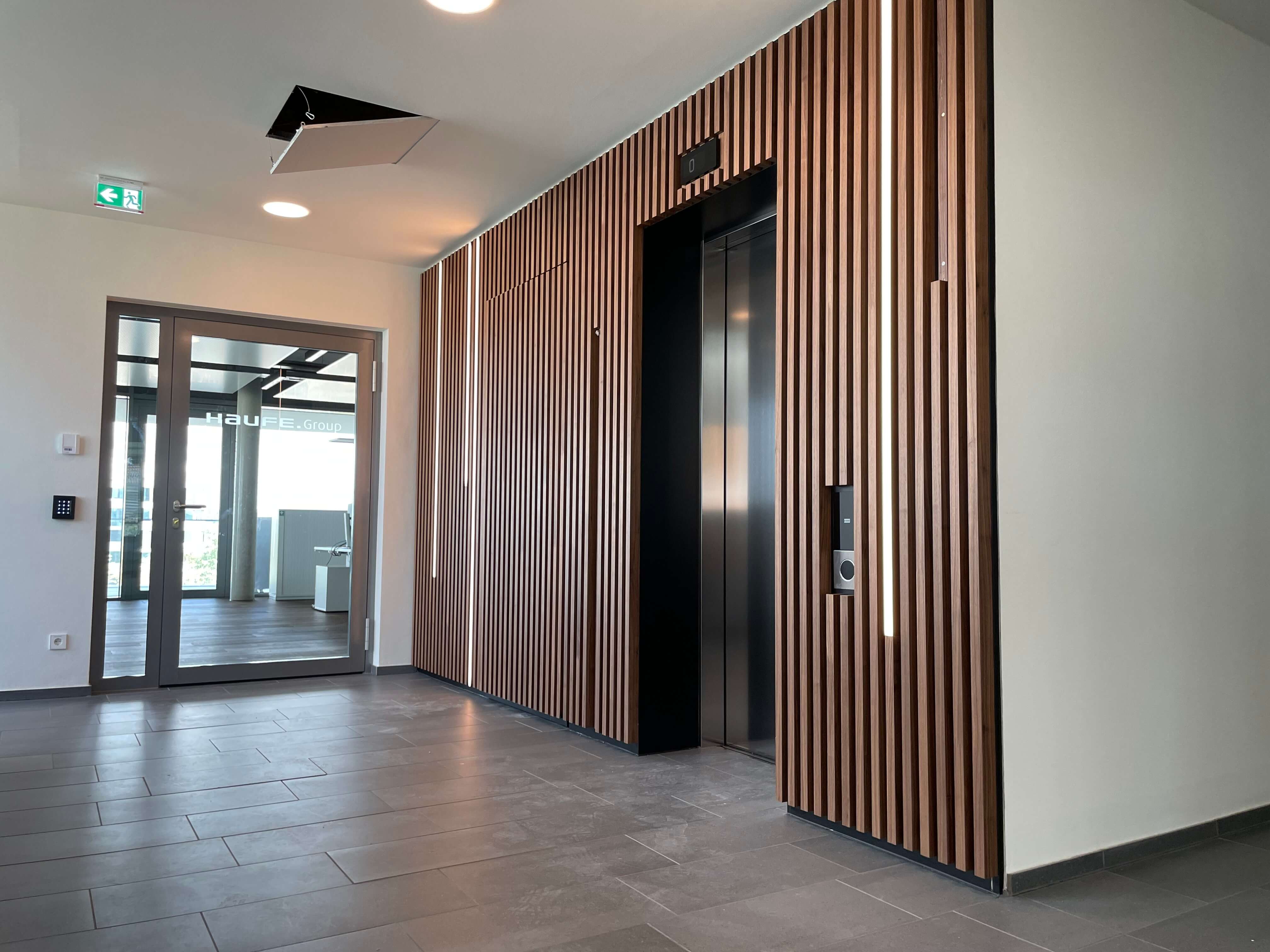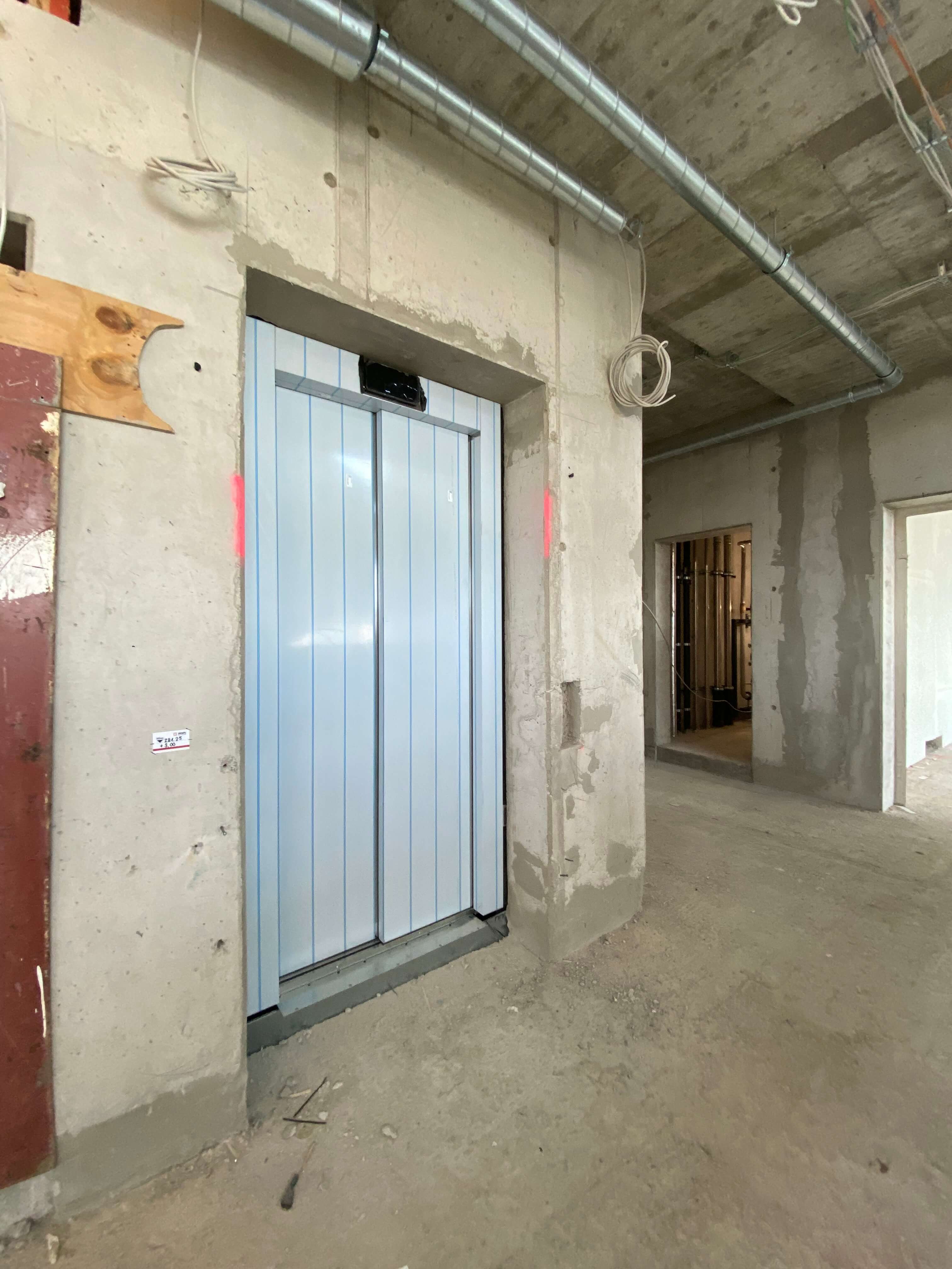 Der Trockenbau ist abgeschlossen und auch der Hohlboden und die Schließung der Trockenbauwände gehen voran. Außerdem ist der Aufzug montiert, so dass es nicht nur zu Fuß nach oben gehen kann!