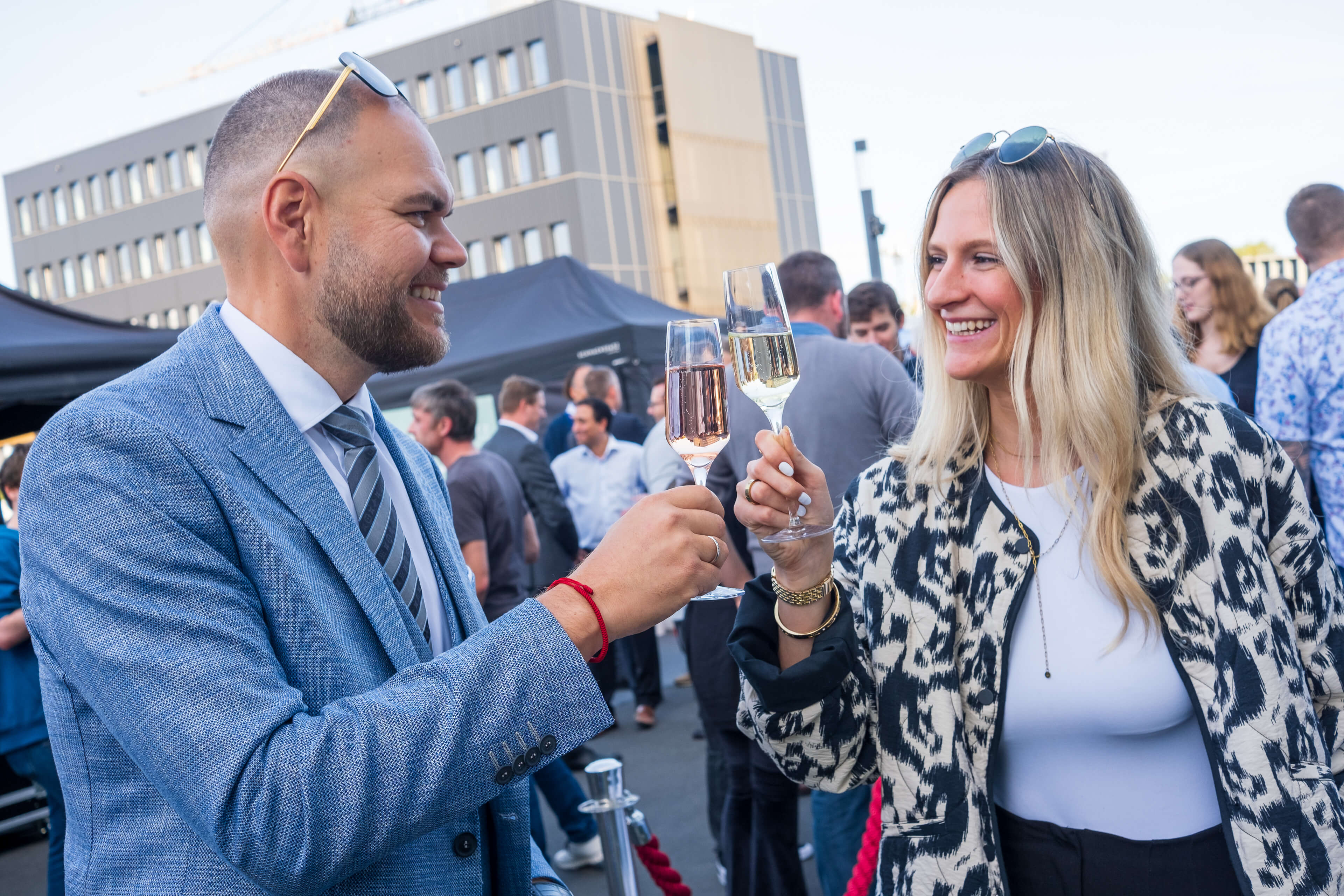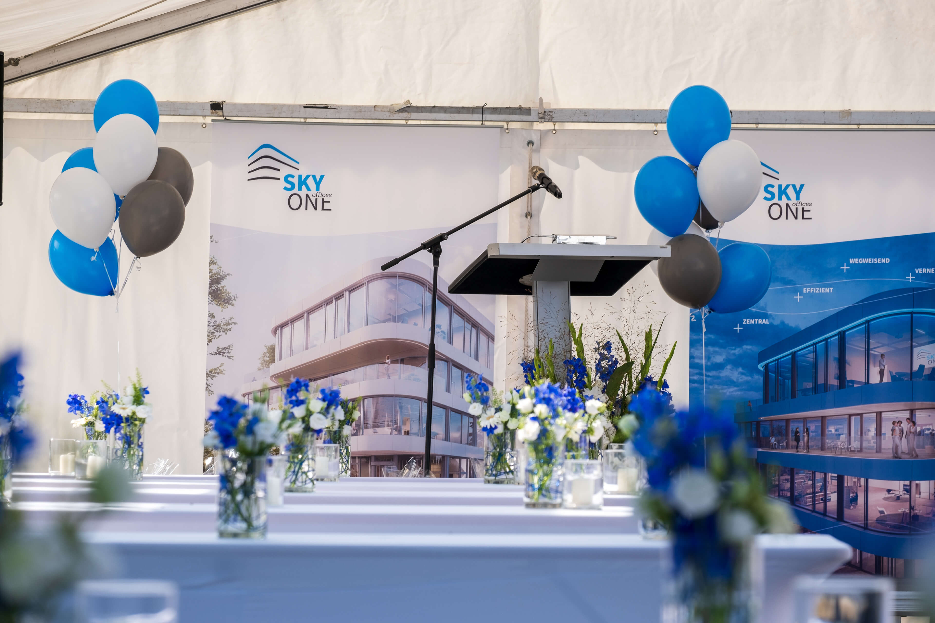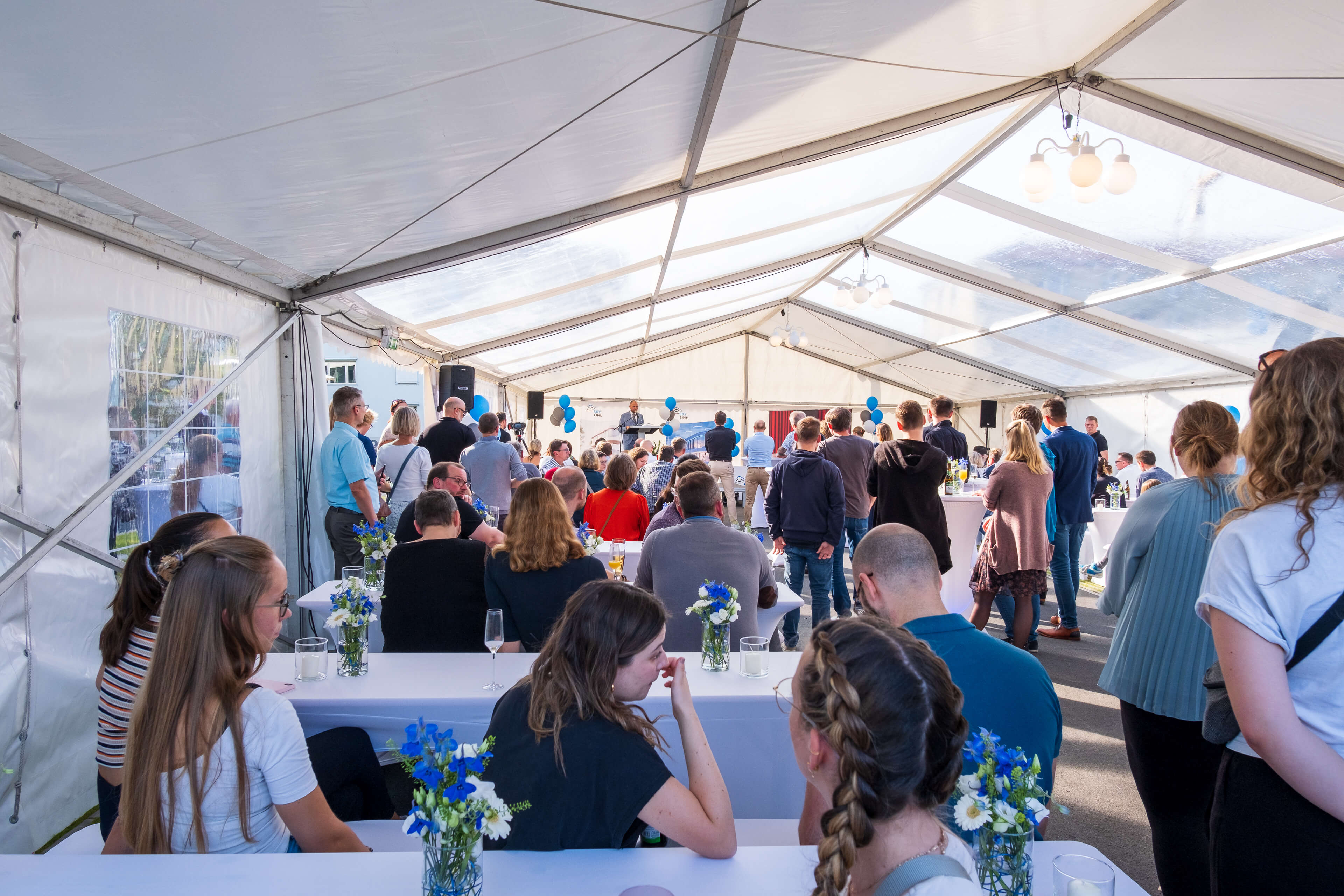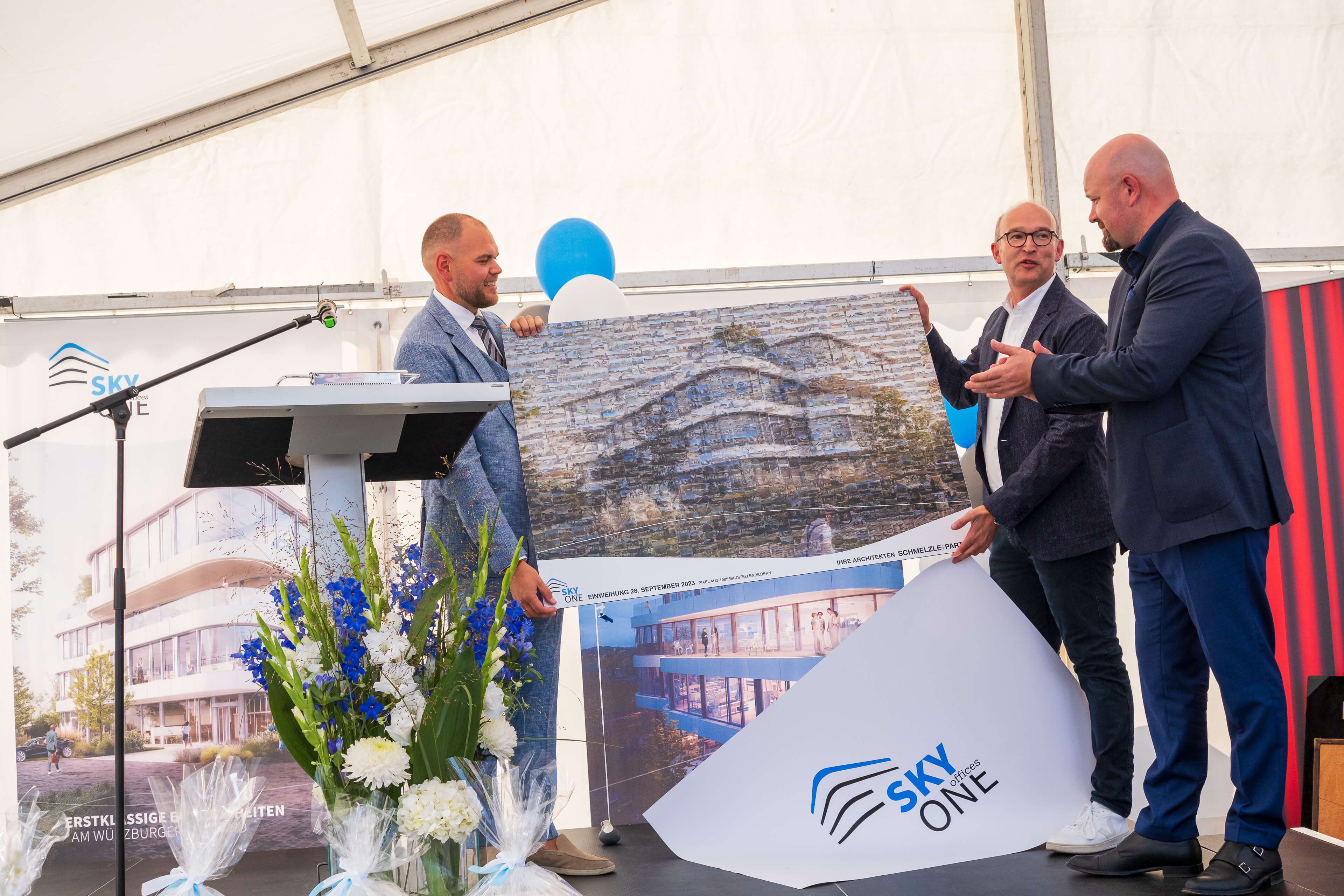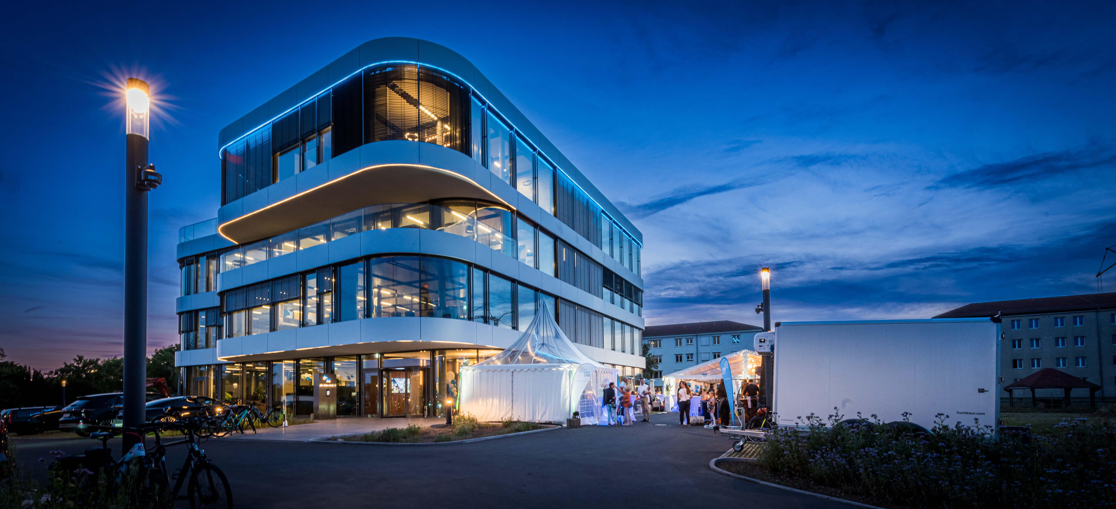 Wir freuen uns sehr, dass wir gemeinsam mit unseren Mietern und vielen interessierten Gästen eine große Einweihungsparty feiern durften. Bei strahlendem Sonnenschein und blauem Himmel gab es vor dem Gebäude einen Sektempfang, leckeres Catering und viele Highlights, auch für die Kleinsten. Architekten, Bauherren und Mieter führten durch die Büros und erklärten spannende Details. Besonders begeistert waren die Besucher von den abgerundeten Glasfronten und von den unterschiedlich Gestaltungsmöglichkeiten der neuen Büros. Sie sind alle großartig geworden! Wir freuen uns schon auf die nächste gemeinsame SKYONE-Feier!