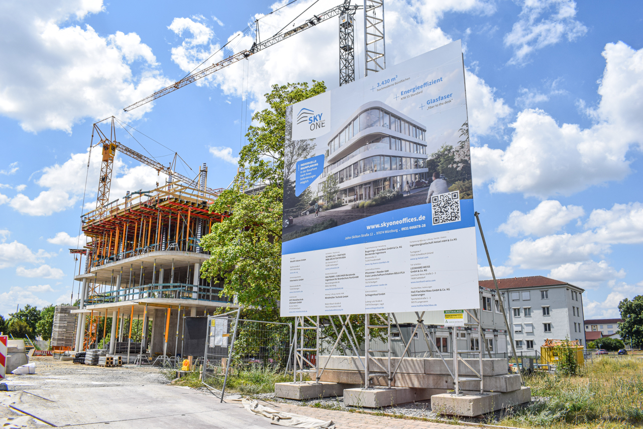 Bleiben Sie auf dem Laufenden! Hier zeigen wir Ihnen in Kürze wichtige Milestones und Baufortschritte der SKYONE.offices am Hubland Nord in Würzburg.